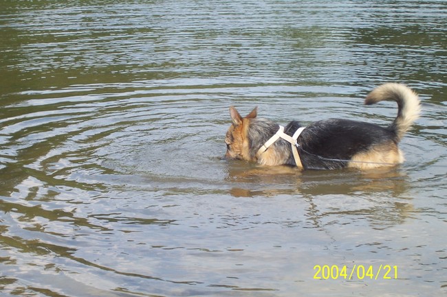 Honden foto's > melissa > hier dacht ie volgens mij dat ie onder water verder kon ruiken .. hihi