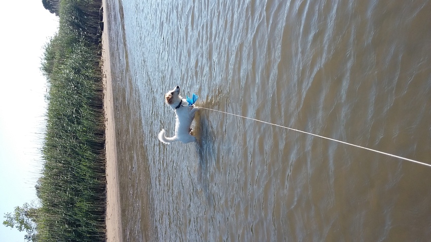 Honden foto's > Annelinn > Dappere DJ zelf het water in
