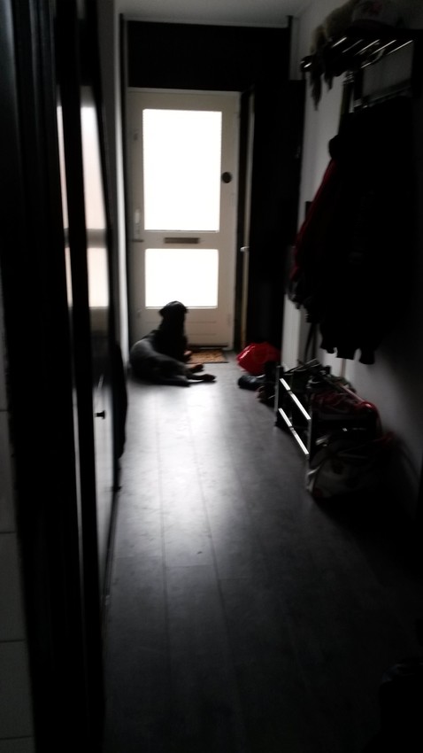 Honden foto's > Nancy en Dino > Komt de baas nog thuis?