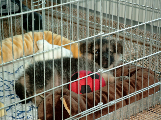Honden foto's > Caroline Janssen-Hardam > Thuis in m'n bench (7 wkn)
