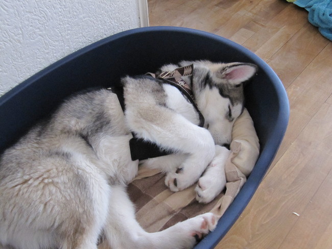 Honden foto's > Marit > Knut ligt hier even lekker te slapen in zijn mandje.