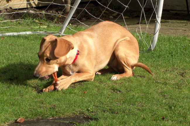 Honden foto's > Martine & Terra > Genieten van het zonnetje in de tuin!