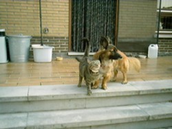 Scooby met onze poes Elvis ( die helaas is overleden ) van Ans