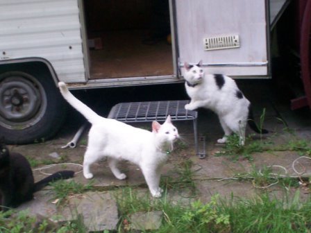 Keira en een poes die was aan komen lopen en het wel gezellig vond bij al onze poezen. van Ans