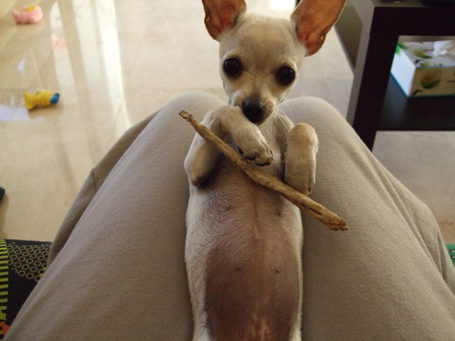 Honden foto's > Nadia & Xixa > Xixa speelt met haar stokje