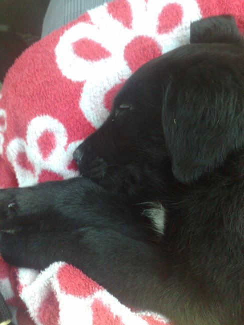 Honden foto's > Wendy SJ > Slapen in de auto, lekker op schoot