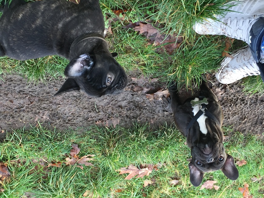 Honden foto's > Samanta > met een bull vriendinnetje gek zijn op koekjes...