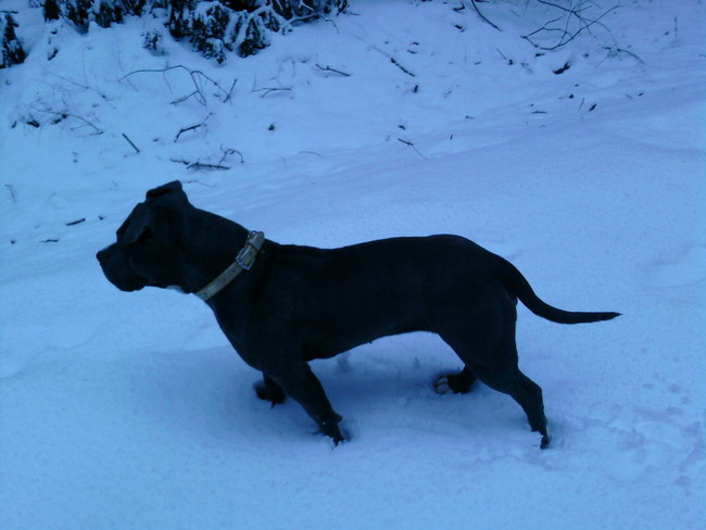 Honden foto's > Tank > Tank voor de 1ste keer in de sneeuw en ze vindt het super!!!