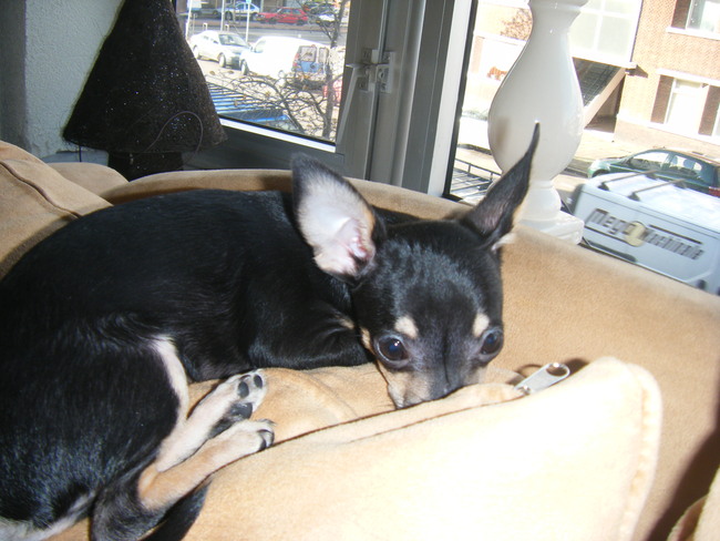 Honden foto's > Dior > Hier lig ik zo lekker me vaste plekje om lekker iedereen in de gaten te houden