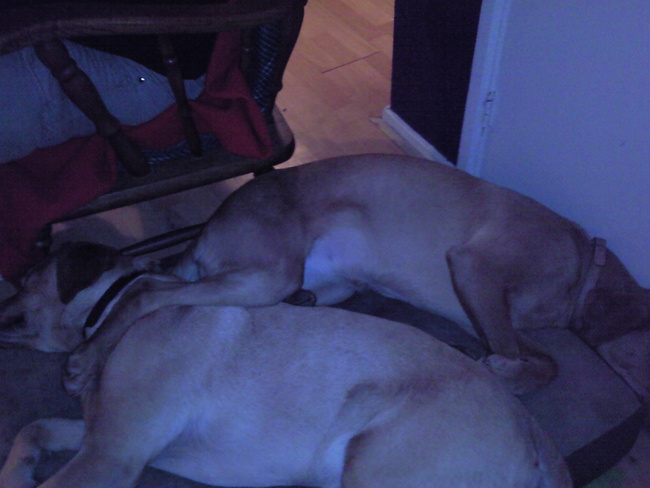 Honden foto's > Gerdine van der Linden > Oppashondjes Beau en Bella. 2 x Labrador zusjes. lekker slapen.