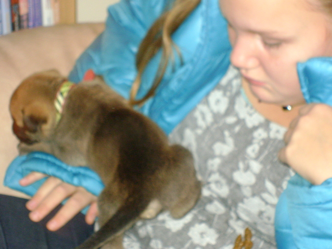 Honden foto's > nina > zo ik ben uit geweest kijk maar op de trui van me baasje