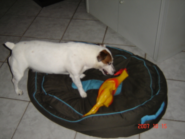 Honden foto's > Nathalie > Da's wel een hele grote kip hoor !