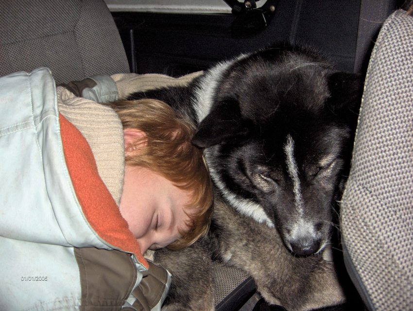 Honden foto's > Vincent > Achter in de auto met Kevin.. bekend tafereel.
