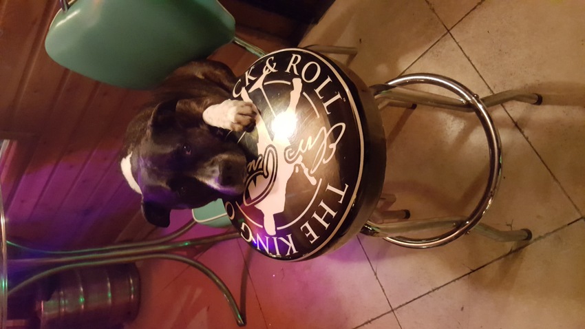 Honden foto's > Willeke&Bella > Bella wilt overal bij zijn ook op een feestje in het tuinhuis