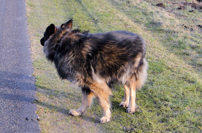 Honden foto's > Hetty & Skipper > Wolf kijkt eens achterom of de anderen wel een beetje bij blijven