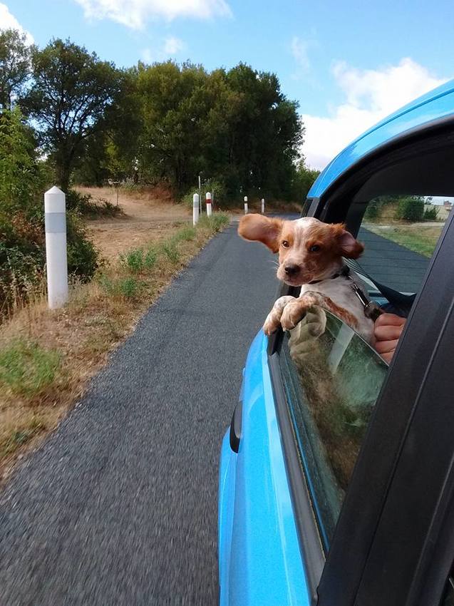 Honden foto's > Yara en Paul > Het is altijd een feestje als je mee mag in de auto!(3 maanden oud)
