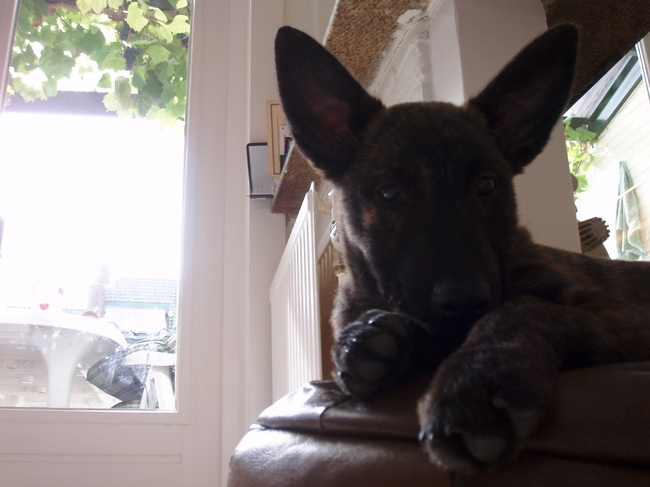 Honden foto's > Nathalie > Ik neem de poef in beslag en ga mooi liggen wezen