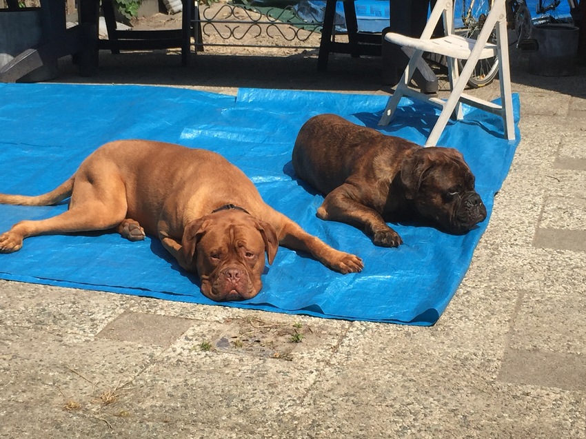 Honden foto's > Manuela Sijbrands > Lekker zonnen. Gonzo licht links en Gizmo rechts