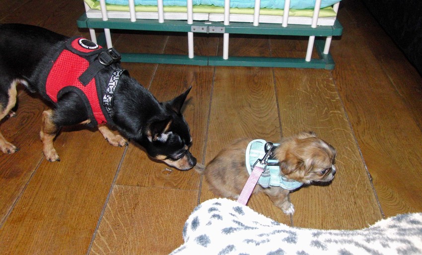 Honden foto's > Marga en de honden Balou R.I.P., Lotus en kat Nemo. > Balou snuffelt even maar vind het maar niets.