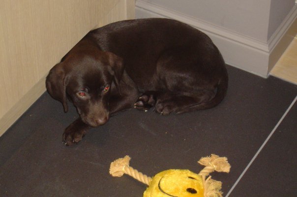 Honden foto's > Paméla, Rik & Laure de lab > Pas thuis, en heel onwennig natuurlijk :-)