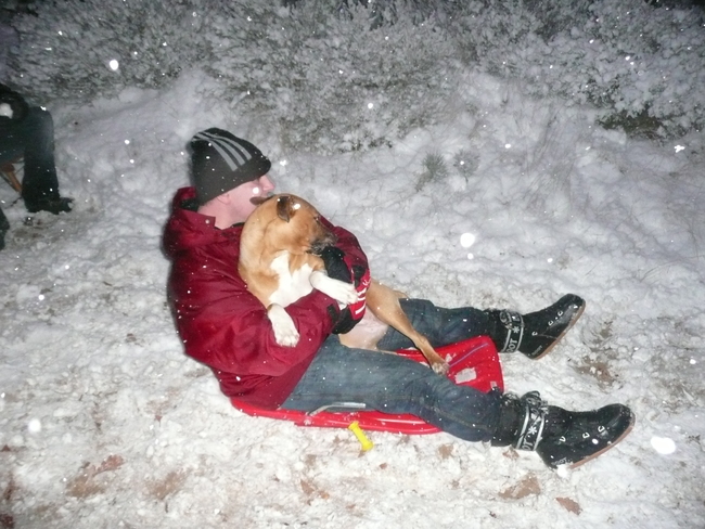 Honden foto's > Michelle > Kyra haar eerste rit op de slee