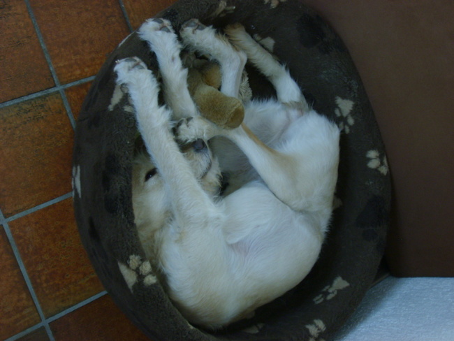 Honden foto's > joyce & tara > kijk ik kan raar liggen...
