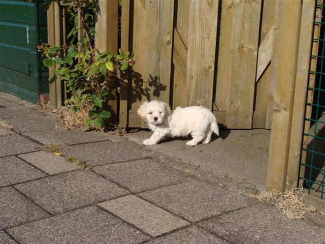 Honden foto's > Monique > NOg een klein stapje, ben toch wel benieuwd wat er daar is allemaal in die grote wereld.