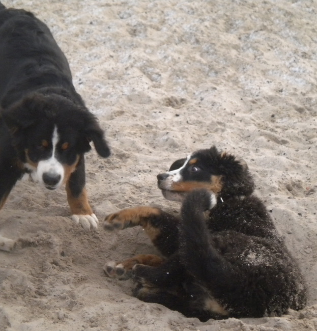 Eindelijk is het me gelukt om die beer in een kuil te krijgen ... Zie hem daar nu liggen ... Waf, Waf, ... I'm the winner ... van * ~ ... Sandra, Zyko, Lloyd & Yuna ... ~ *