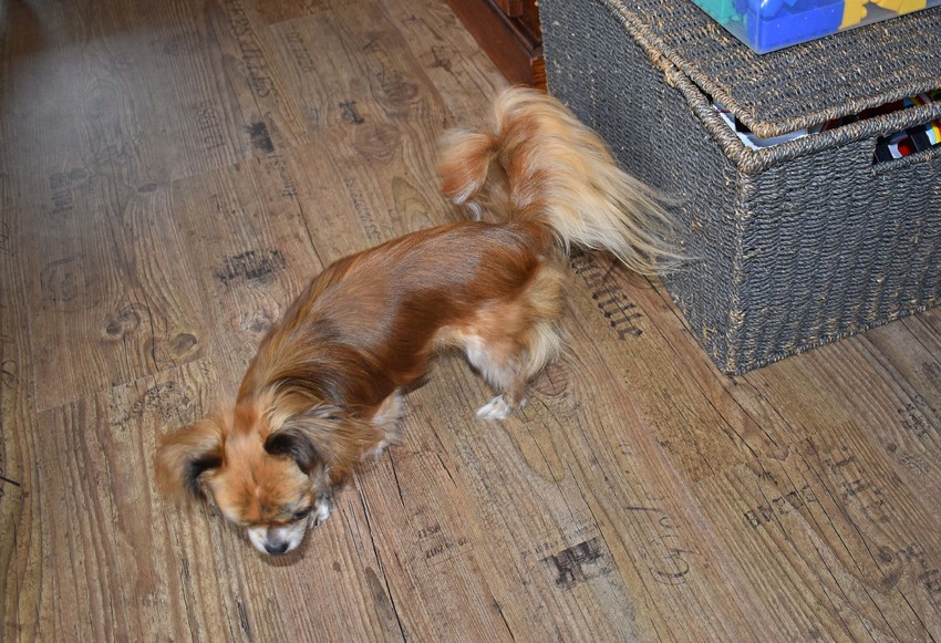 Honden foto's > Marga en de honden Balou R.I.P., Lotus en kat Nemo. > Lotus is gewassen, haar staart ziet er veel voller uit.