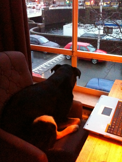 Honden foto's > Esther > dit is een hele goede plek aan het raam maar die stoel is toch echt te klein!