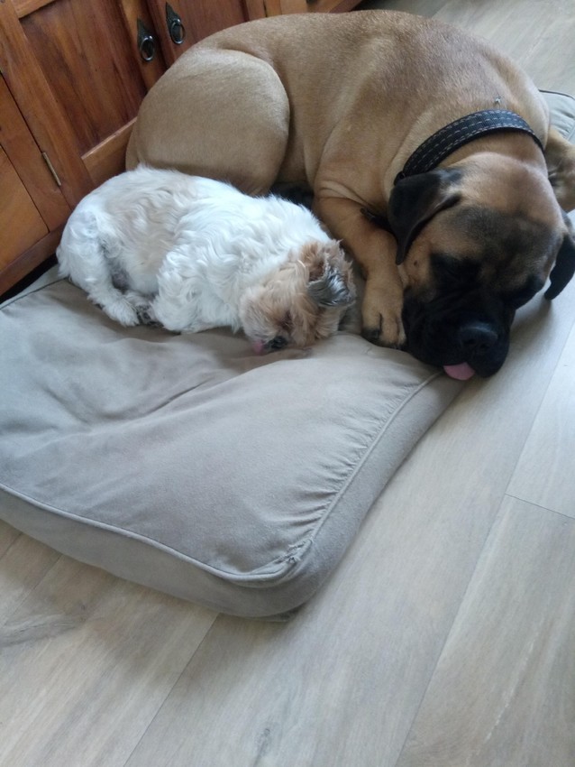 Jacky schreef om 14 september om 18:16 Samen slapen ,en allebei met onze tong eruit , Daisy doet dat al jaren en dat komt zeggen ze doordat de koppies te klein zijn om de tong binnen te houden . Maar geloof niet dat dat bij een Bullmastiff van toepassing is Laat ook een krabbel achter Om een krabbel achter te laten moet je eerst inloggen
