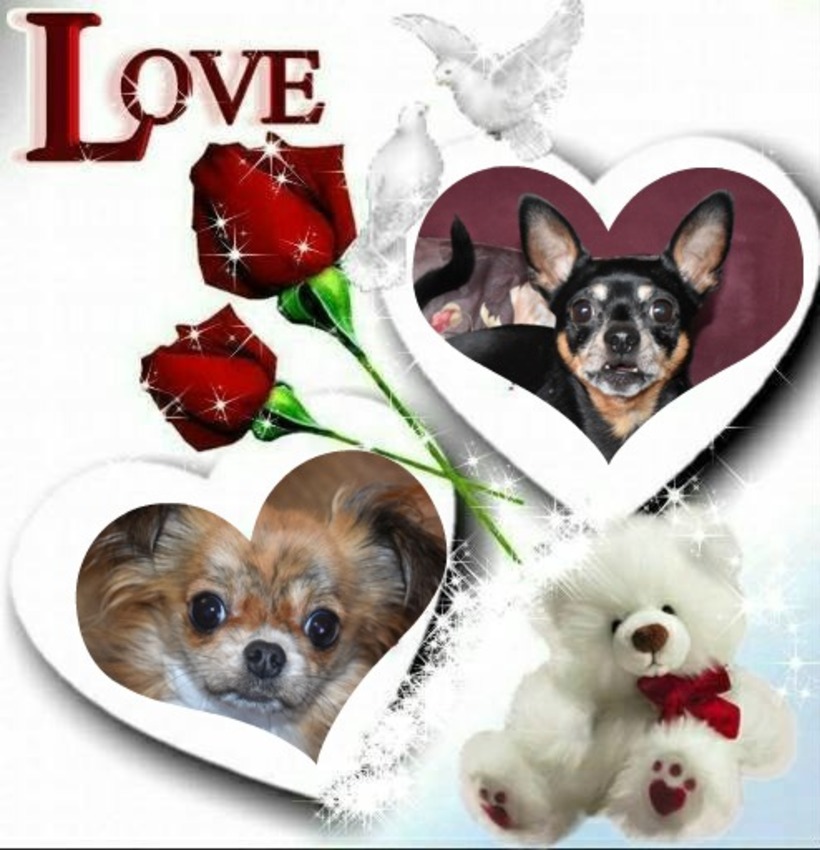 Valentijn 2019 van Marga en de honden Balou R.I.P., Lotus en kat Nemo.