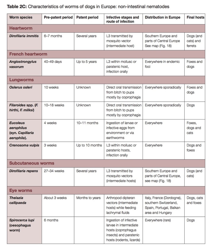 Honden foto's > Careana > Overzicht van verschillende soorten longwormen.