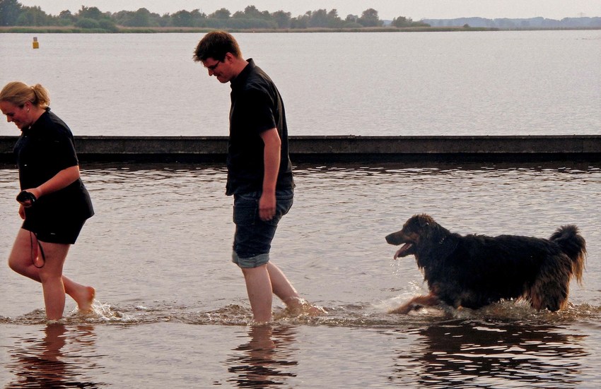 Honden foto's > Marga en de honden Balou R.I.P., Lotus en kat Nemo. > Mowgli samen met dochter en schoonzoon.