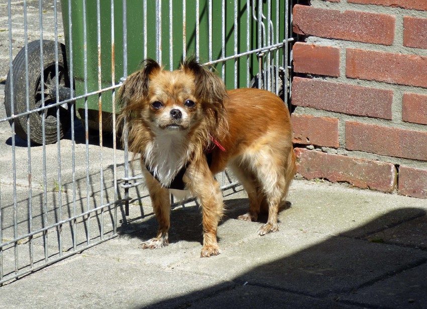 Honden foto's > Marga en de honden Balou R.I.P., Lotus en kat Nemo. > Lotus achter het huis in het zonnetje.