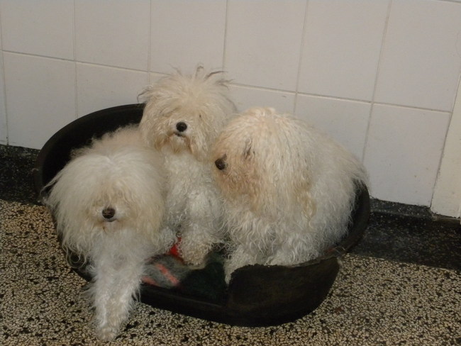 Bolognezers zijn heel sociaal naar elkaar. Drie van onze hondjes : Wampie, Myra en Dido. van D. van der Lichte- van Waart