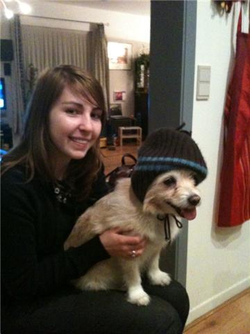 Honden foto's > Sarah, Aïcha + en Mica > Aïcha met een lekker warm mutsje op ;-)