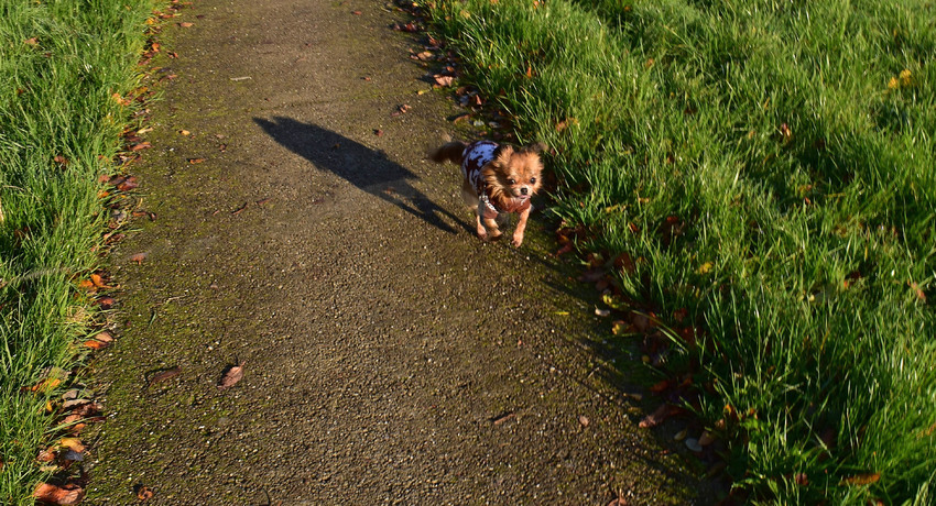 Honden foto's > Marga en de honden Balou R.I.P., Lotus en kat Nemo. > De kleine spruit trekt even een sprintje.
