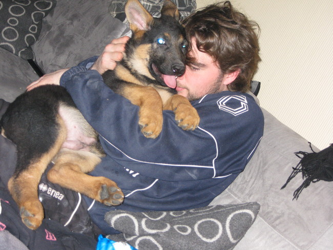 Honden foto's > Nathalie & Max & Kira > Aan het knuffelen met 't baasje, mijn ventje