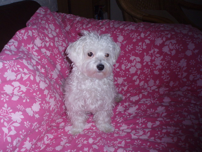 Honden foto's > Roos > oei, op het bed van d'r liefste baasje.