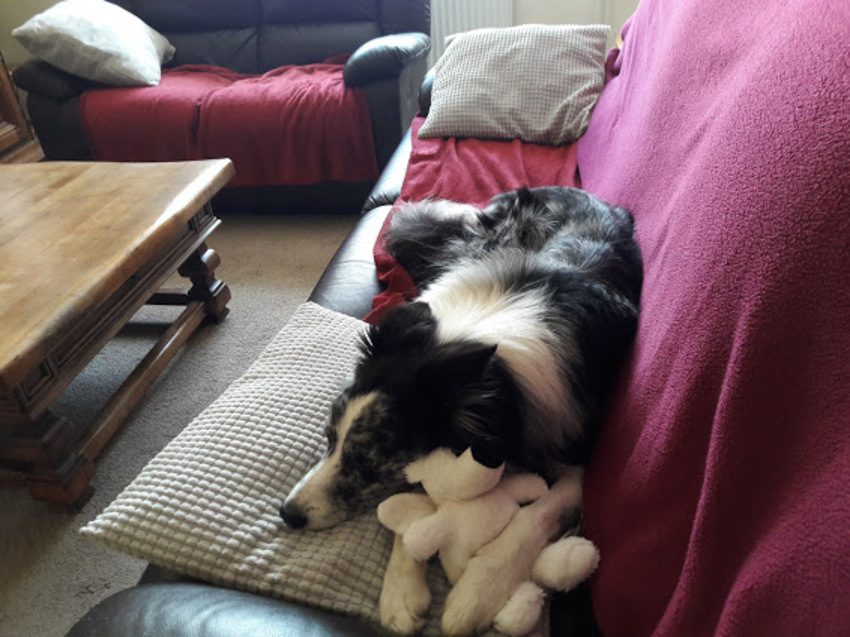 Goed gespeeld en gelopen. Dan even rusten met de nieuwe knuffel van op de rommelmarkt ;)