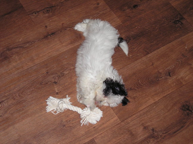 Honden foto's > Natasja > Angel weer met haar touw(9 weken)