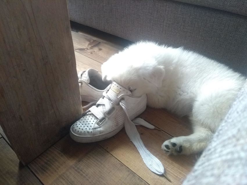 Honden foto's > Lineke & Saar(tje) > Eerste dag thuis