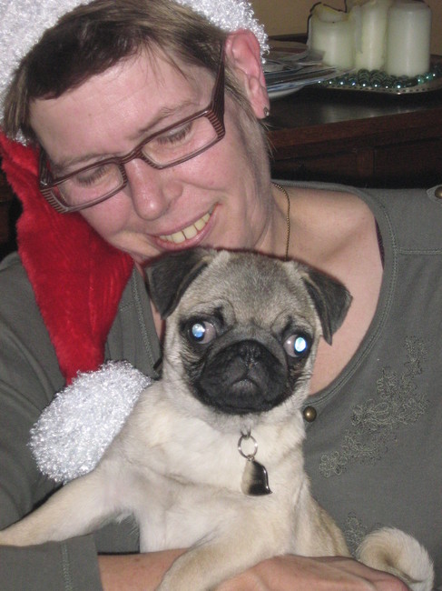 Honden foto's > petra > Met het oppasvrouwtje (mn moeder) met kerst!