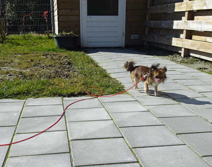 Honden foto's > Marga en de honden Balou R.I.P., Lotus en kat Nemo. > Lotus geniet van het zonnetje.
