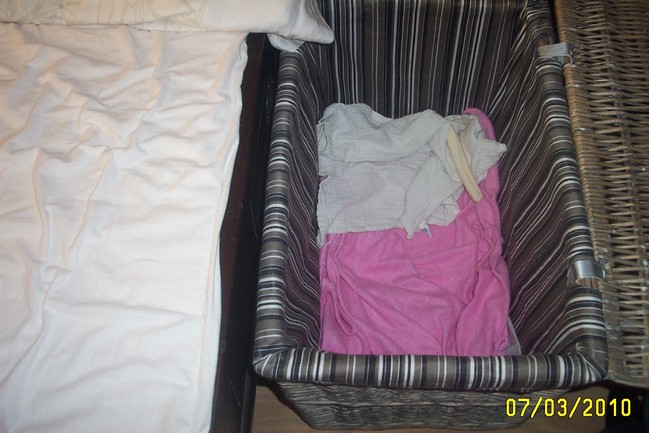 > De speelgoedkist waar Tyson vanacht in heeft geslapen, er lag ook nog een grote hondenknuffel bij!