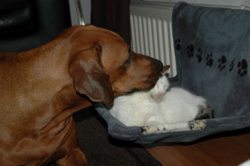 Honden foto's > Sandra/Themba > effe de oortjes wassen