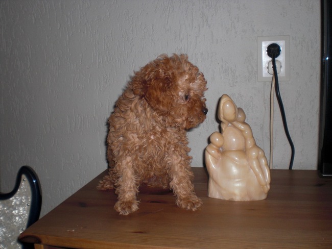 Honden foto's > bets-bean&raider > mij vrouwtje heeft dit beeldje gemaakt van spek steen knap he