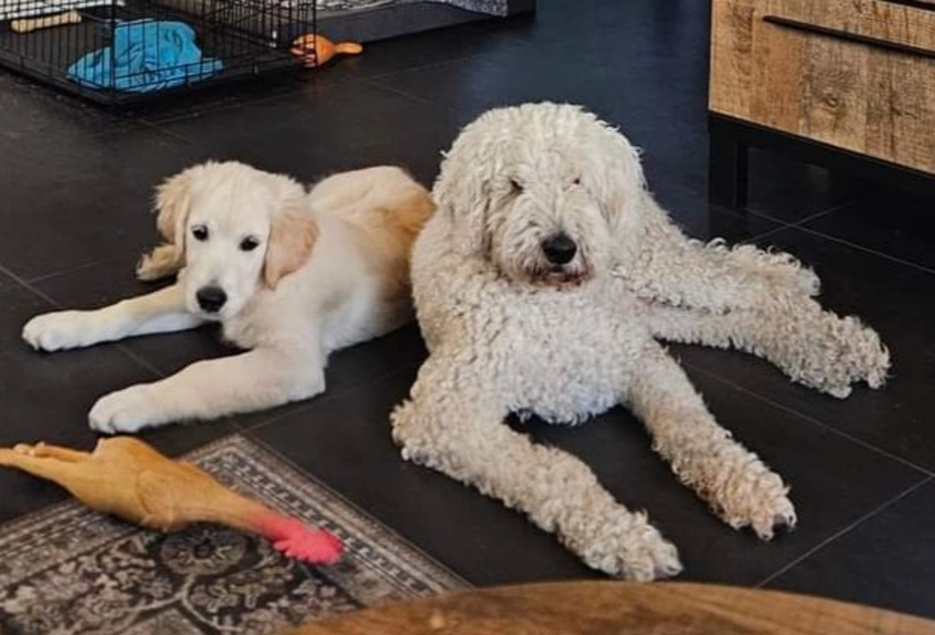Honden foto's > Baasje van Sam en Spike > Sam Golden Doodle van 10 jaar en Spike een Golden Retriever van nu 9 maanden.