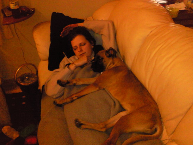 Honden foto's > Susan > bovenop mijn baasje slapen...merkt ze toch niet,ligt ook te slapen